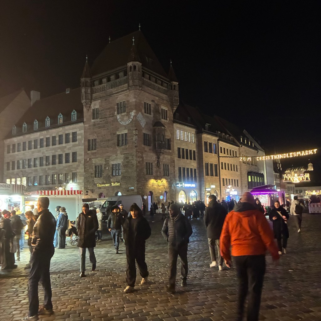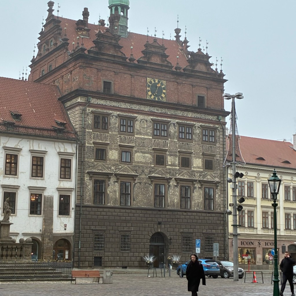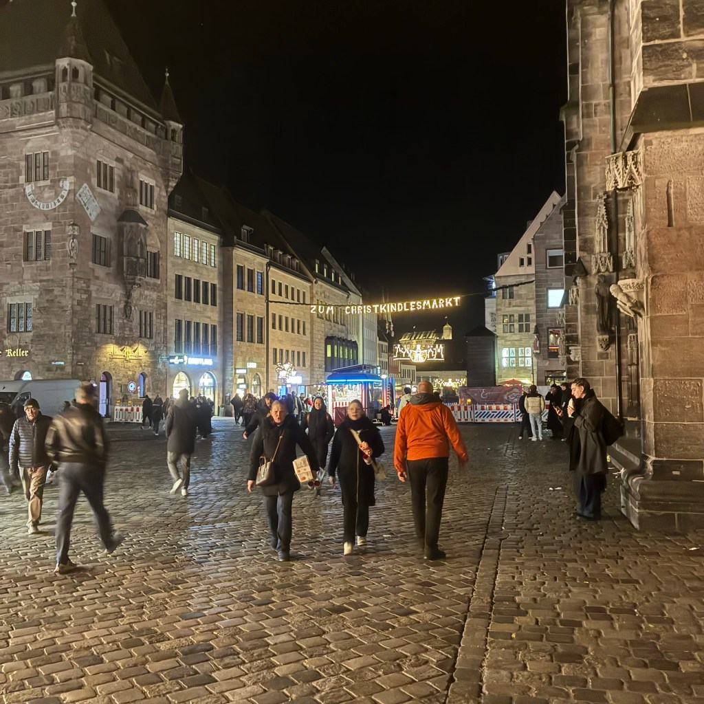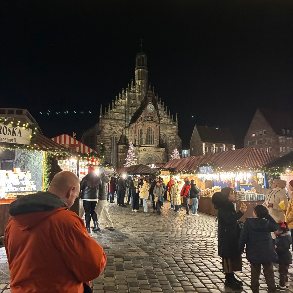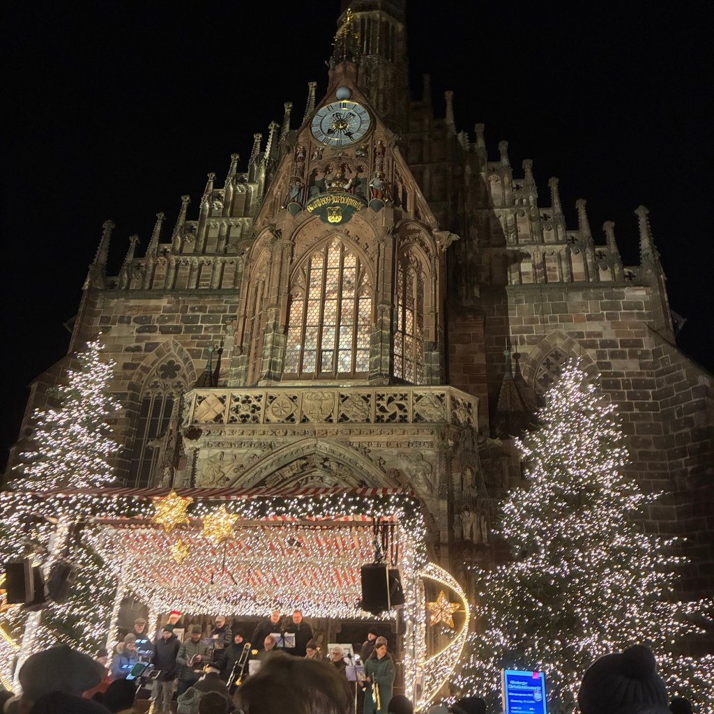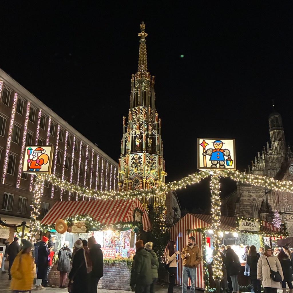 Entry hallway to breakfast.An exceptional breakfast buffet for a hotel chain.Very traditional European breakfast assortment.We enjoy experiencing the local breakfast juices. Here it was Sour Cherry and it was good enough for a second cup.Found a “Lidl” store in Bucharova outside of Prague (Aldi’s competitor).Two kinds of ‘Roger’ candy bar, Classic and Nut. Name/flavor coincidences?Pictures of the town Plzen, Czech Republic. Great architecture and their Christmas Market.PlzenPlzenPlzenPlzenPlzenPlzenCathedral of St. Bartholomew, PlzenGothic cathedral with the tallest church towers in the Czech Republic.PlzenPlzenCathedral of St BartholomewPlzenTallest church tower in in the Czech Republic.PlzenPlzenPlzenFor lunch, assorted sausages with mustard and sauerkraut along with a fresh pretzel.PlzenPlzenPlzenPlzenLive cabbage plants, etc decorating the Christmas Market.PlzenInclement weather on our drive back to Nuremberg.Nuremberg Christmas Market, one of many entrances.Rear view of the infamous Church of Our Lady, a famous landmark.Look closely near the top, you’ll see the Mannleinlaufen Clock. Every day at noon the performance (created in 1509) is Seven prince-electors circle Emperor Charles IV.Restaurant for dinner.For dinner, Cordon Bleu with potato salad and roast pork with dumplings.Apple strudel for dessert.Front entrance of the Church of Our Lady.Look for Roger in this picture.
