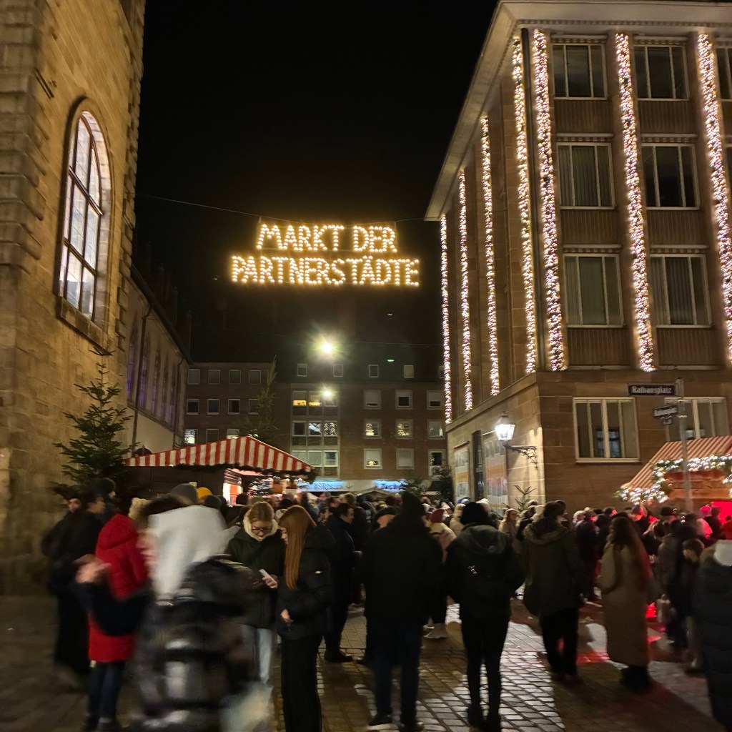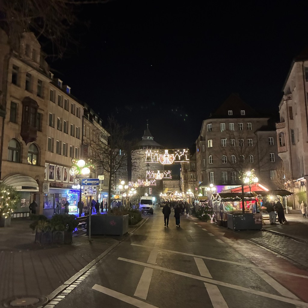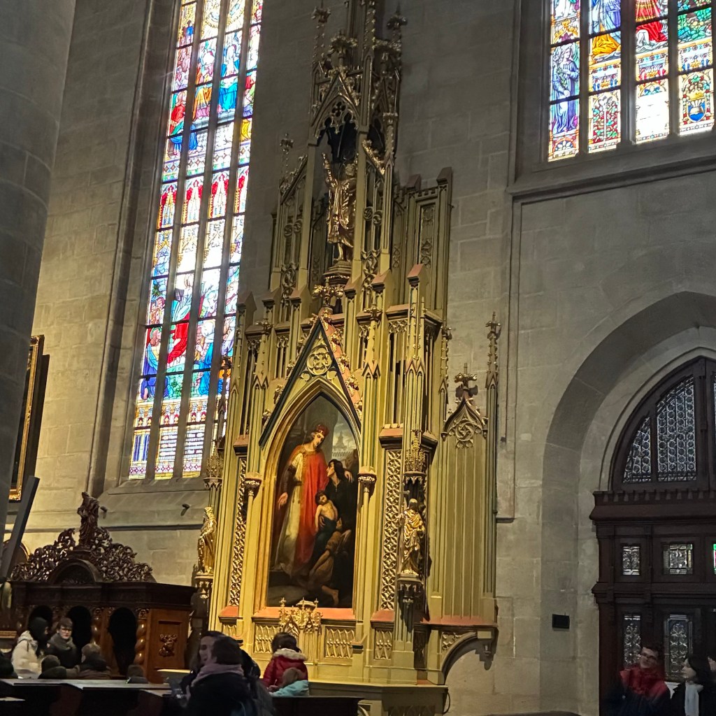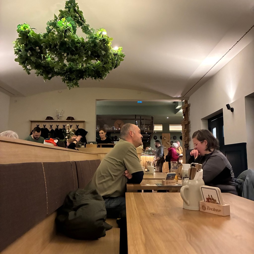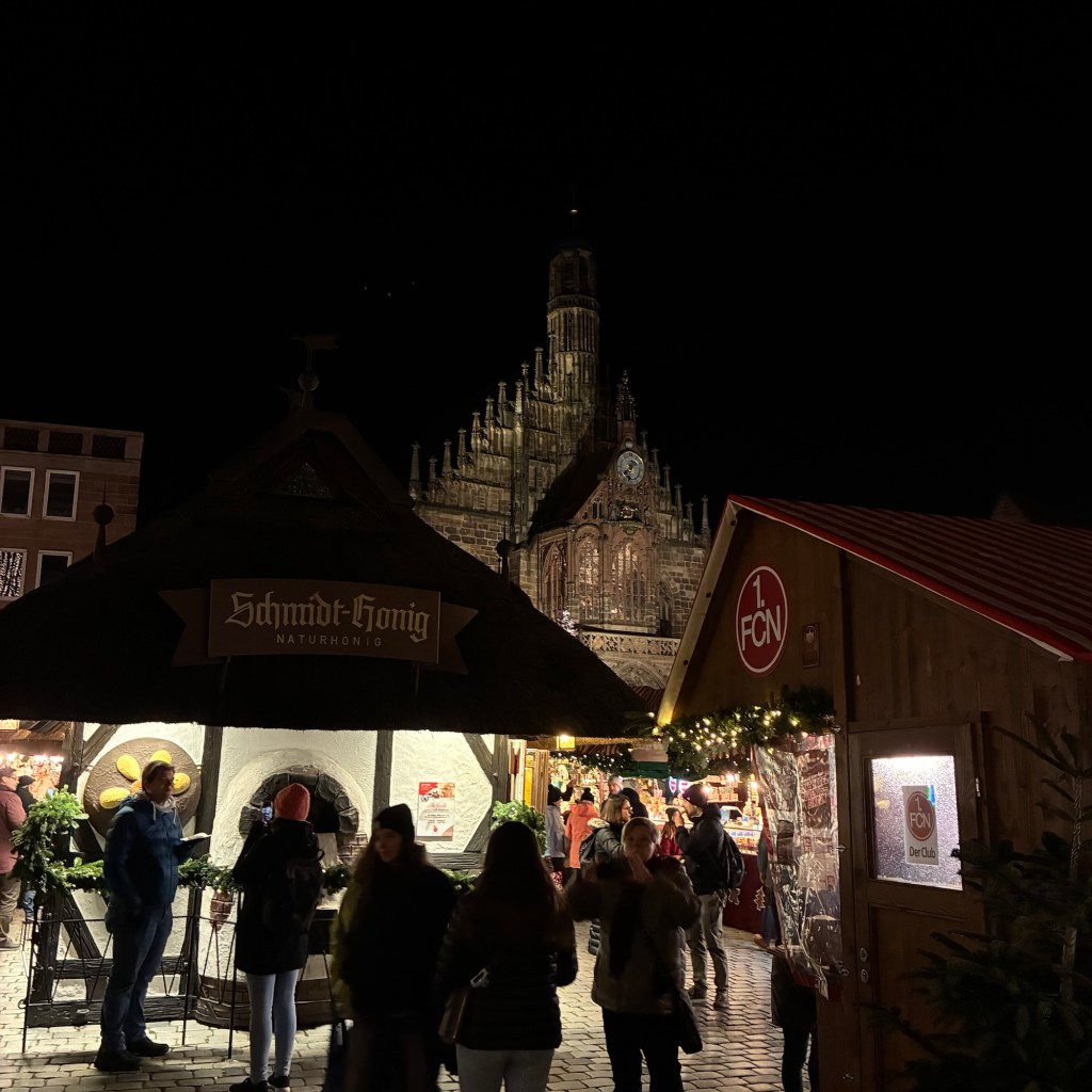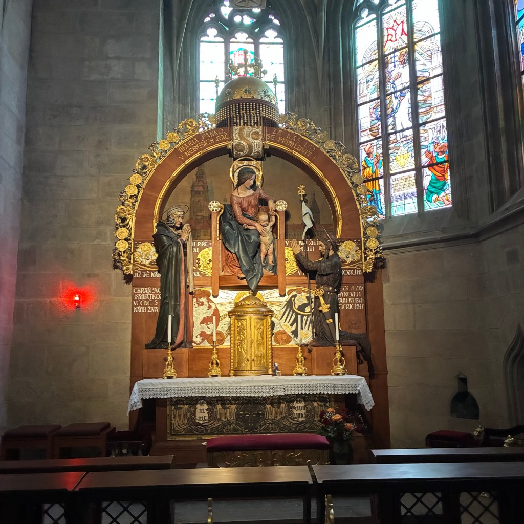 Entry hallway to breakfast.An exceptional breakfast buffet for a hotel chain.Very traditional European breakfast assortment.We enjoy experiencing the local breakfast juices. Here it was Sour Cherry and it was good enough for a second cup.Found a “Lidl” store in Bucharova outside of Prague (Aldi’s competitor).Two kinds of ‘Roger’ candy bar, Classic and Nut. Name/flavor coincidences?Pictures of the town Plzen, Czech Republic. Great architecture and their Christmas Market.PlzenPlzenPlzenPlzenPlzenPlzenCathedral of St. Bartholomew, PlzenGothic cathedral with the tallest church towers in the Czech Republic.PlzenPlzenCathedral of St BartholomewPlzenTallest church tower in in the Czech Republic.PlzenPlzenPlzenFor lunch, assorted sausages with mustard and sauerkraut along with a fresh pretzel.PlzenPlzenPlzenPlzenLive cabbage plants, etc decorating the Christmas Market.PlzenInclement weather on our drive back to Nuremberg.Nuremberg Christmas Market, one of many entrances.Rear view of the infamous Church of Our Lady, a famous landmark.Look closely near the top, you’ll see the Mannleinlaufen Clock. Every day at noon the performance (created in 1509) is Seven prince-electors circle Emperor Charles IV.Restaurant for dinner.For dinner, Cordon Bleu with potato salad and roast pork with dumplings.Apple strudel for dessert.Front entrance of the Church of Our Lady.Look for Roger in this picture.