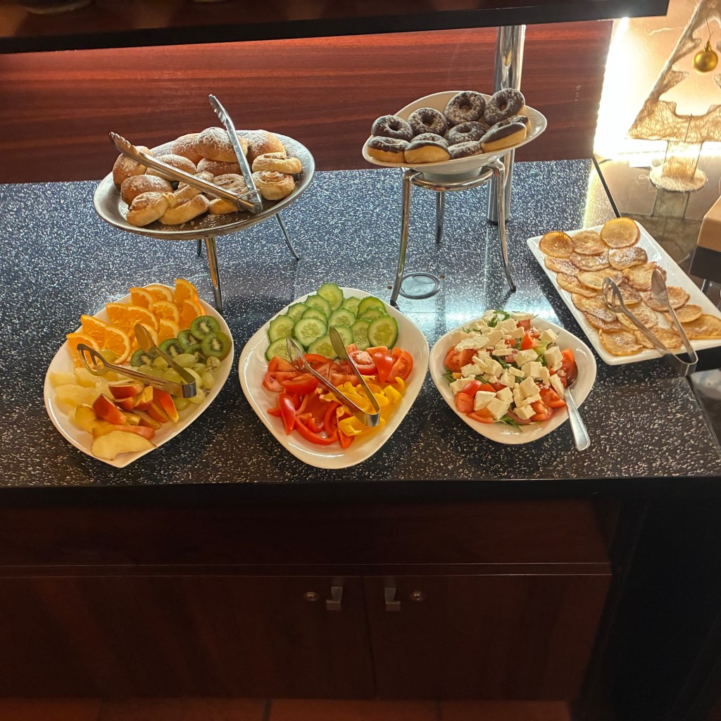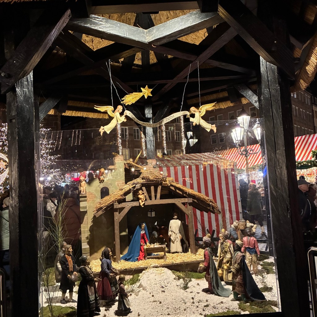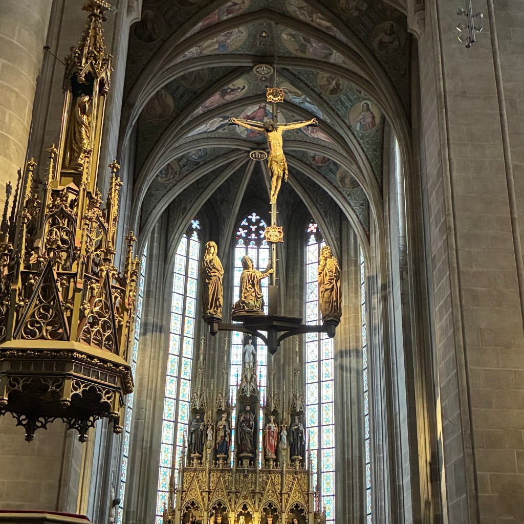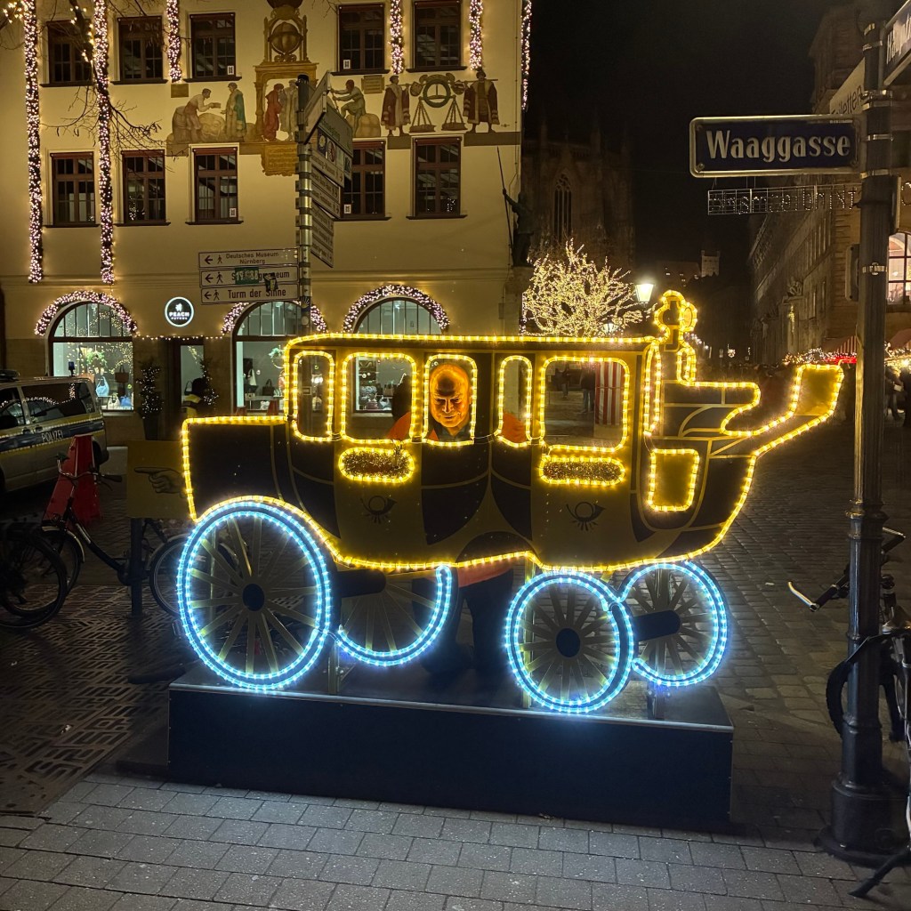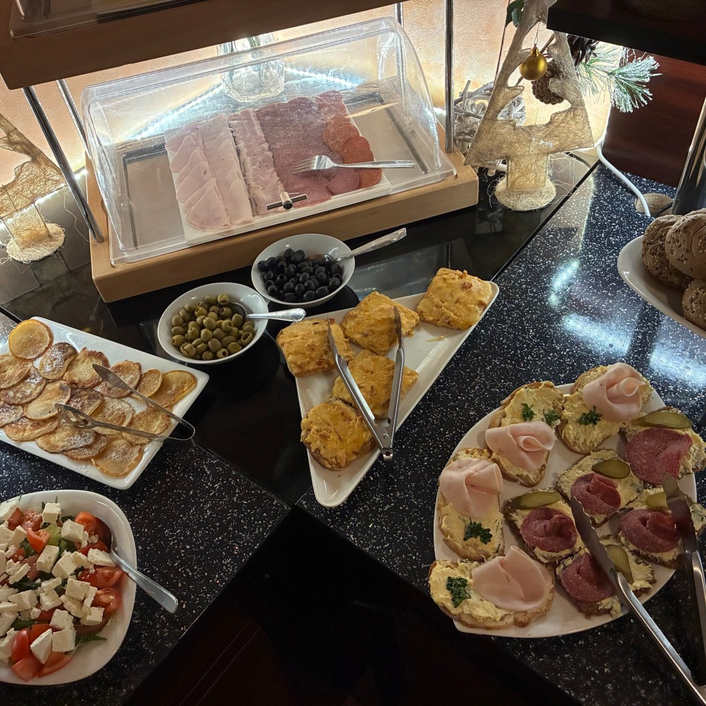 Entry hallway to breakfast.An exceptional breakfast buffet for a hotel chain.Very traditional European breakfast assortment.We enjoy experiencing the local breakfast juices. Here it was Sour Cherry and it was good enough for a second cup.Found a “Lidl” store in Bucharova outside of Prague (Aldi’s competitor).Two kinds of ‘Roger’ candy bar, Classic and Nut. Name/flavor coincidences?Pictures of the town Plzen, Czech Republic. Great architecture and their Christmas Market.PlzenPlzenPlzenPlzenPlzenPlzenCathedral of St. Bartholomew, PlzenGothic cathedral with the tallest church towers in the Czech Republic.PlzenPlzenCathedral of St BartholomewPlzenTallest church tower in in the Czech Republic.PlzenPlzenPlzenFor lunch, assorted sausages with mustard and sauerkraut along with a fresh pretzel.PlzenPlzenPlzenPlzenLive cabbage plants, etc decorating the Christmas Market.PlzenInclement weather on our drive back to Nuremberg.Nuremberg Christmas Market, one of many entrances.Rear view of the infamous Church of Our Lady, a famous landmark.Look closely near the top, you’ll see the Mannleinlaufen Clock. Every day at noon the performance (created in 1509) is Seven prince-electors circle Emperor Charles IV.Restaurant for dinner.For dinner, Cordon Bleu with potato salad and roast pork with dumplings.Apple strudel for dessert.Front entrance of the Church of Our Lady.Look for Roger in this picture.