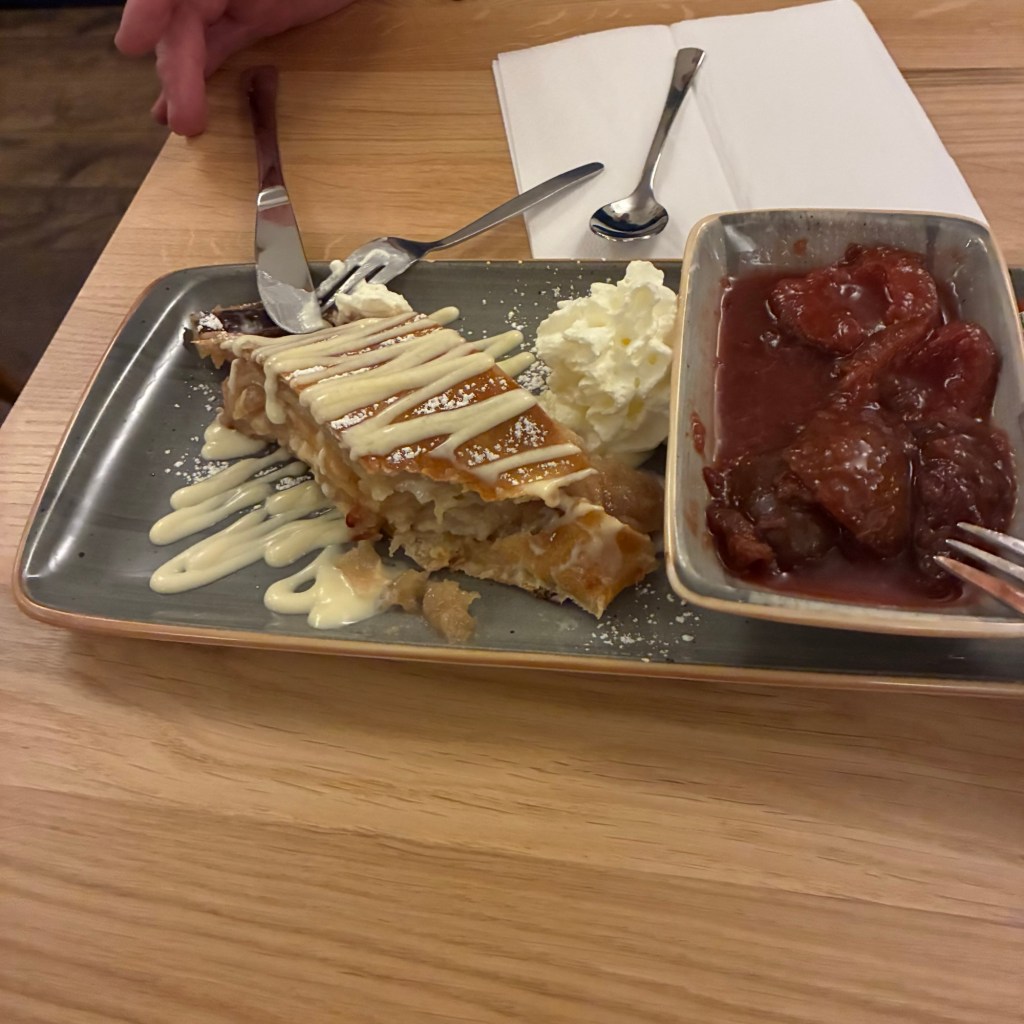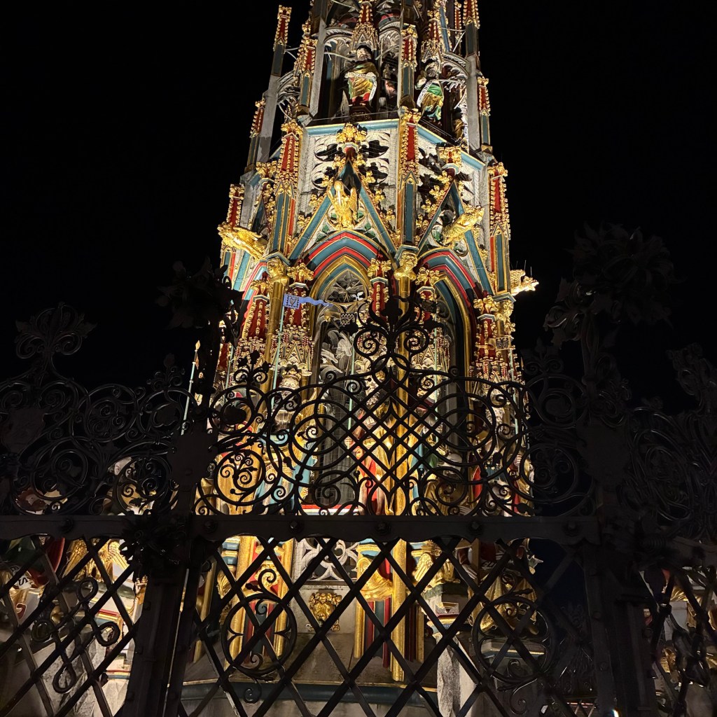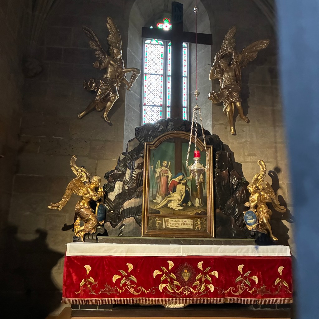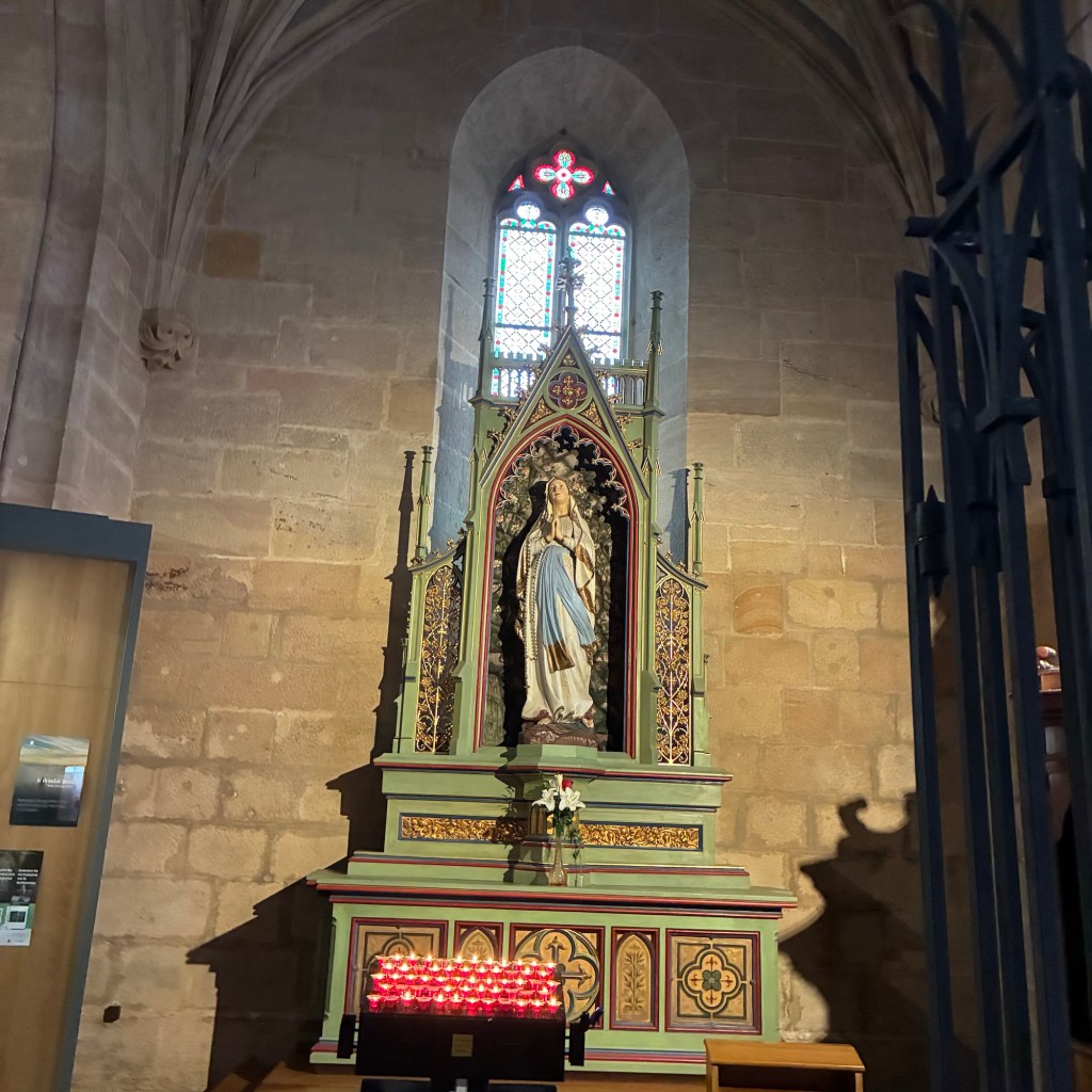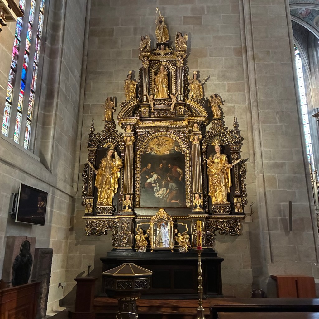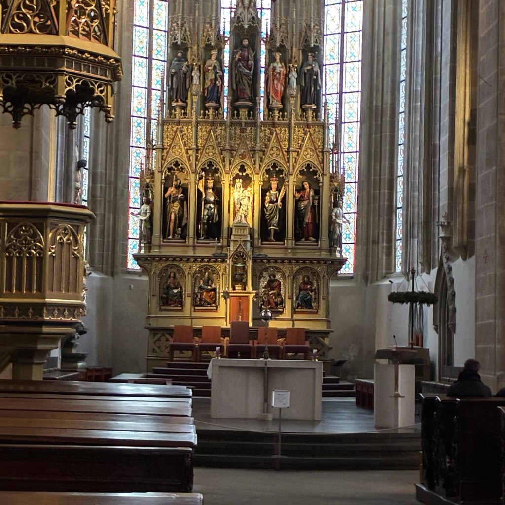 Entry hallway to breakfast.An exceptional breakfast buffet for a hotel chain.Very traditional European breakfast assortment.We enjoy experiencing the local breakfast juices. Here it was Sour Cherry and it was good enough for a second cup.Found a “Lidl” store in Bucharova outside of Prague (Aldi’s competitor).Two kinds of ‘Roger’ candy bar, Classic and Nut. Name/flavor coincidences?Pictures of the town Plzen, Czech Republic. Great architecture and their Christmas Market.PlzenPlzenPlzenPlzenPlzenPlzenCathedral of St. Bartholomew, PlzenGothic cathedral with the tallest church towers in the Czech Republic.PlzenPlzenCathedral of St BartholomewPlzenTallest church tower in in the Czech Republic.PlzenPlzenPlzenFor lunch, assorted sausages with mustard and sauerkraut along with a fresh pretzel.PlzenPlzenPlzenPlzenLive cabbage plants, etc decorating the Christmas Market.PlzenInclement weather on our drive back to Nuremberg.Nuremberg Christmas Market, one of many entrances.Rear view of the infamous Church of Our Lady, a famous landmark.Look closely near the top, you’ll see the Mannleinlaufen Clock. Every day at noon the performance (created in 1509) is Seven prince-electors circle Emperor Charles IV.Restaurant for dinner.For dinner, Cordon Bleu with potato salad and roast pork with dumplings.Apple strudel for dessert.Front entrance of the Church of Our Lady.Look for Roger in this picture.