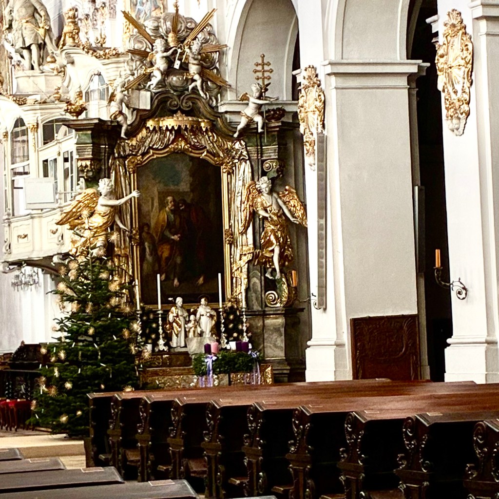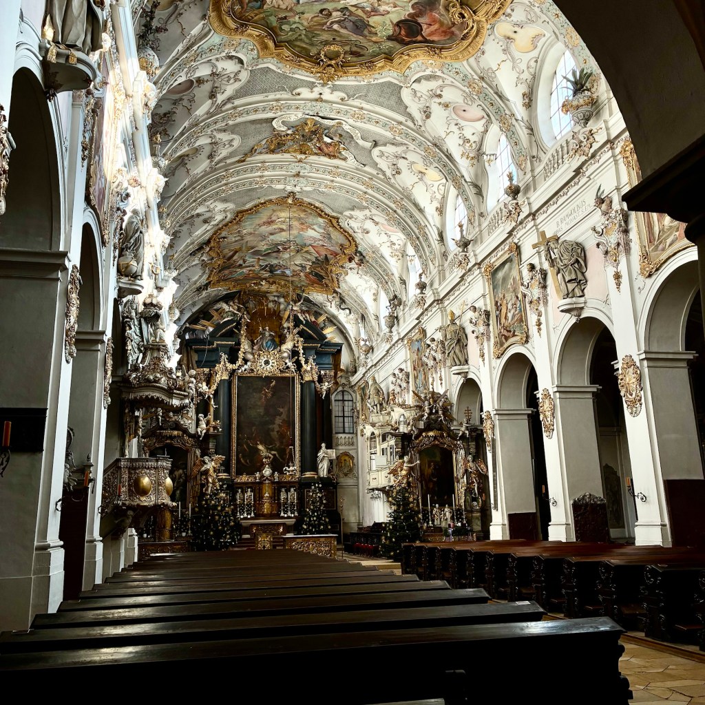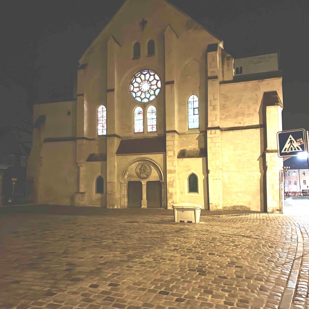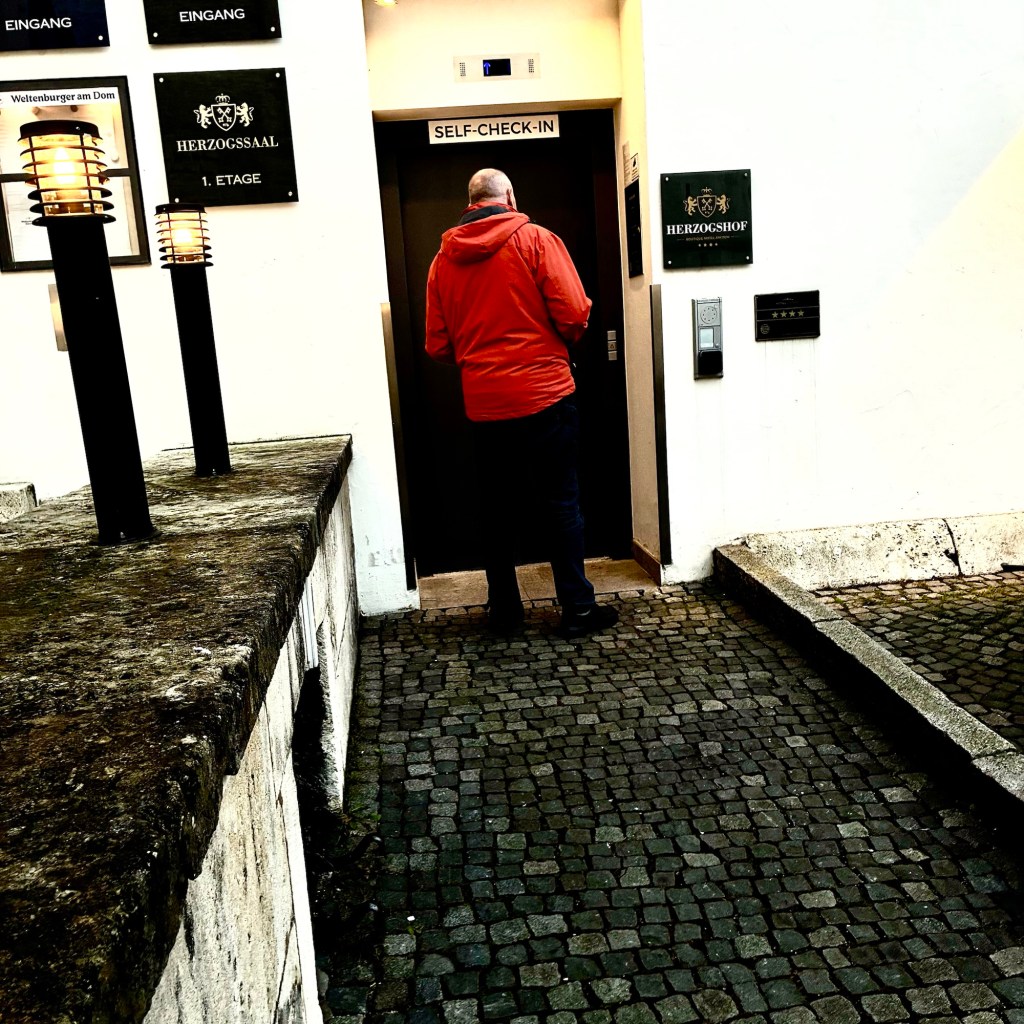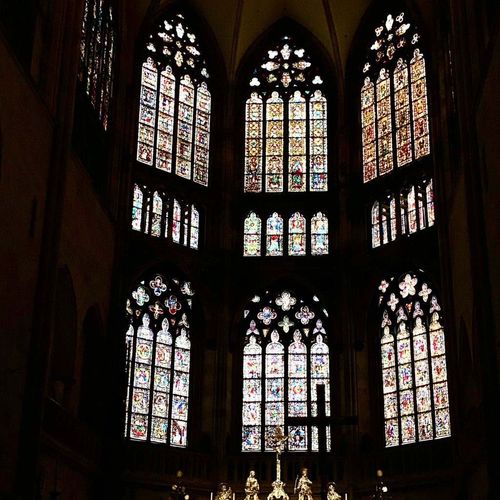 Interior pictures of St Peters Cathedral in Regensburg. Sorry about the poor quality of pictures.Suggest Google for better pictures.Town of Regensburg Germany.Regensburg Christmas MarketExterior work on St Peter’s Cathedral in Regensburg.Interior pictures of the Papal Basilica of St Emmerin.Regensburg View of the cathedral from our hotel.Dinner at our hotel restaurant.Pumpkin Cream Soup. Sweet and sour pumpkin with pumpkin seed oil and pumpkin seeds – Yumm! Ron ate two bowls!Baked Salmon Trout Fillet. Sauerkraut crust, potatoe and apple salad, horseradish dip.Exterior entrance to our hotel.Our hotel room- Hotel Regensburg Herzogshof am Dom.Exterior picture of our hotel.Late night dinner – ciao Pizzeria and Restaurant.Local version of bruschetta ( no balsamic glaze).Rigatoni Rustica.Exterior view of our hotel in Regensberg.