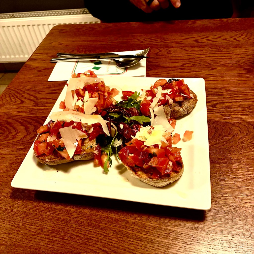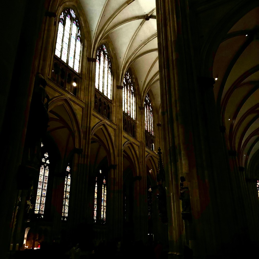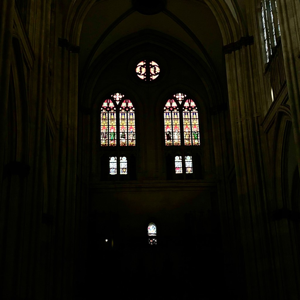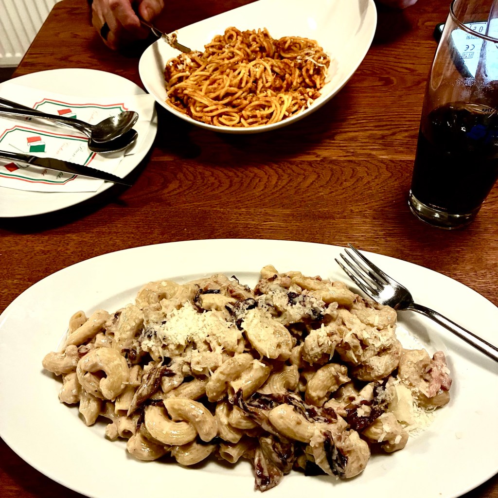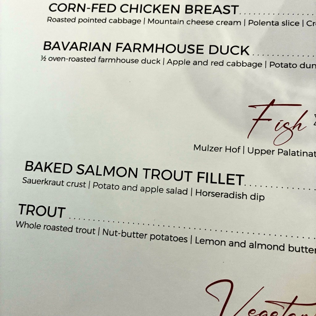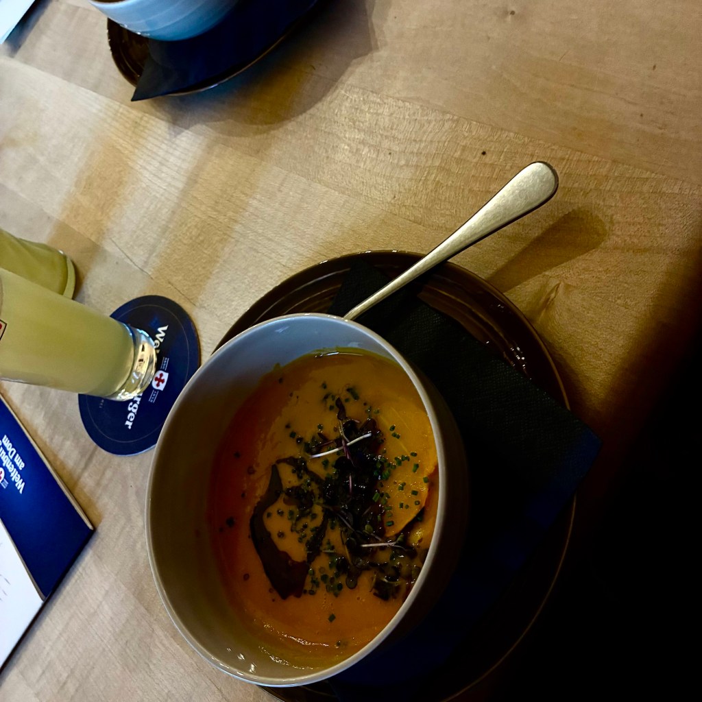 Interior pictures of St Peters Cathedral in Regensburg. Sorry about the poor quality of pictures.Suggest Google for better pictures.Town of Regensburg Germany.Regensburg Christmas MarketExterior work on St Peter’s Cathedral in Regensburg.Interior pictures of the Papal Basilica of St Emmerin.Regensburg View of the cathedral from our hotel.Dinner at our hotel restaurant.Pumpkin Cream Soup. Sweet and sour pumpkin with pumpkin seed oil and pumpkin seeds – Yumm! Ron ate two bowls!Baked Salmon Trout Fillet. Sauerkraut crust, potatoe and apple salad, horseradish dip.Exterior entrance to our hotel.Our hotel room- Hotel Regensburg Herzogshof am Dom.Exterior picture of our hotel.Late night dinner – ciao Pizzeria and Restaurant.Local version of bruschetta ( no balsamic glaze).Rigatoni Rustica.Exterior view of our hotel in Regensberg.