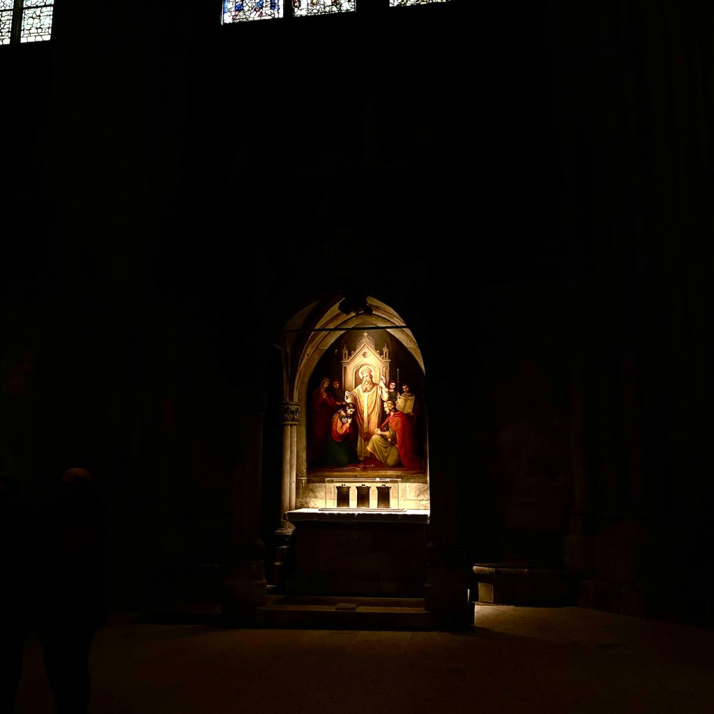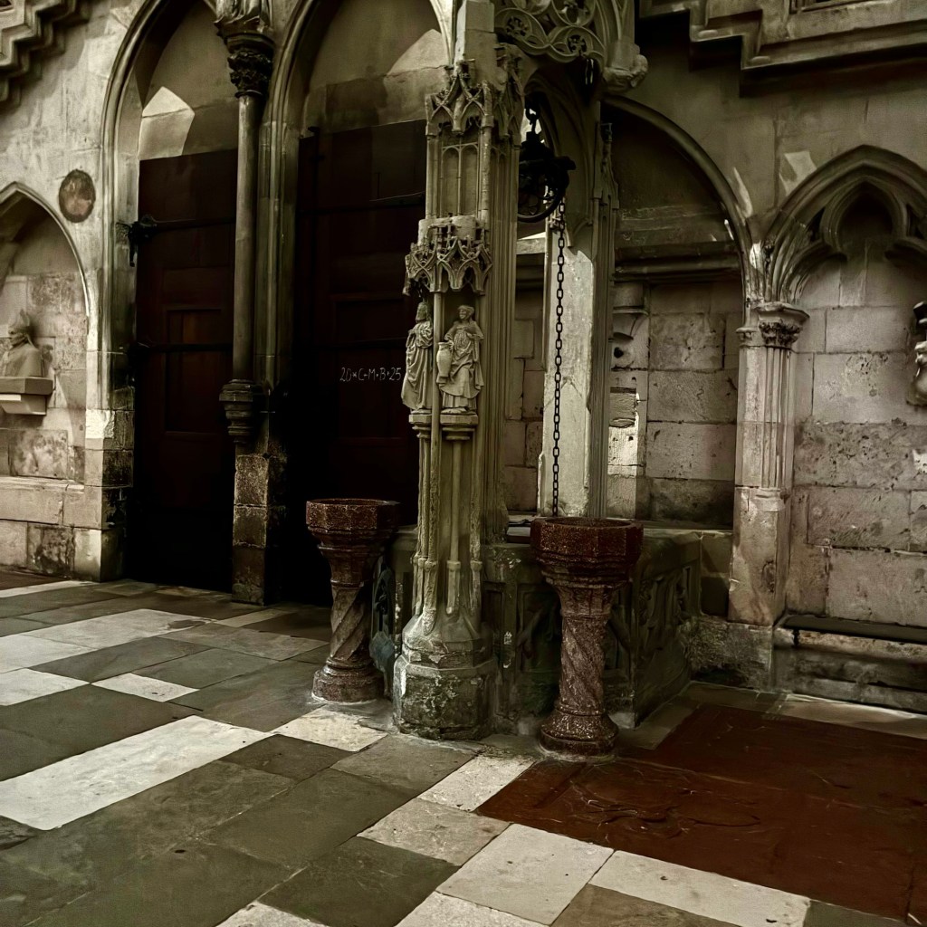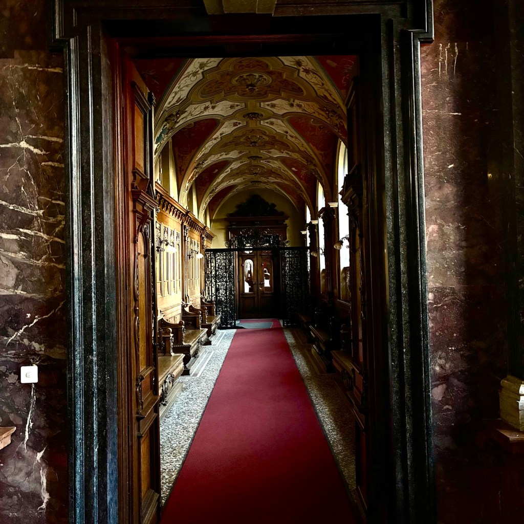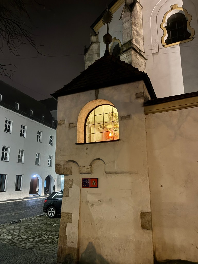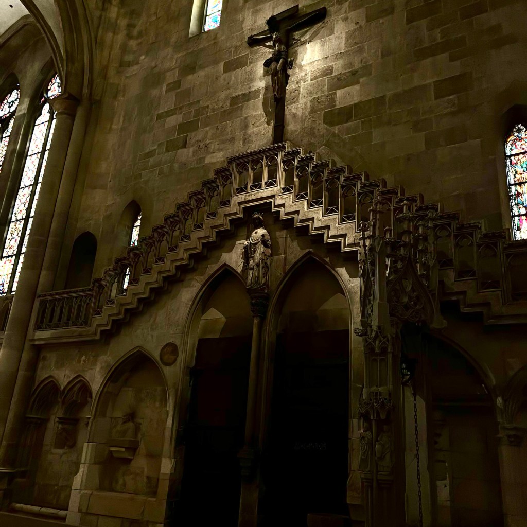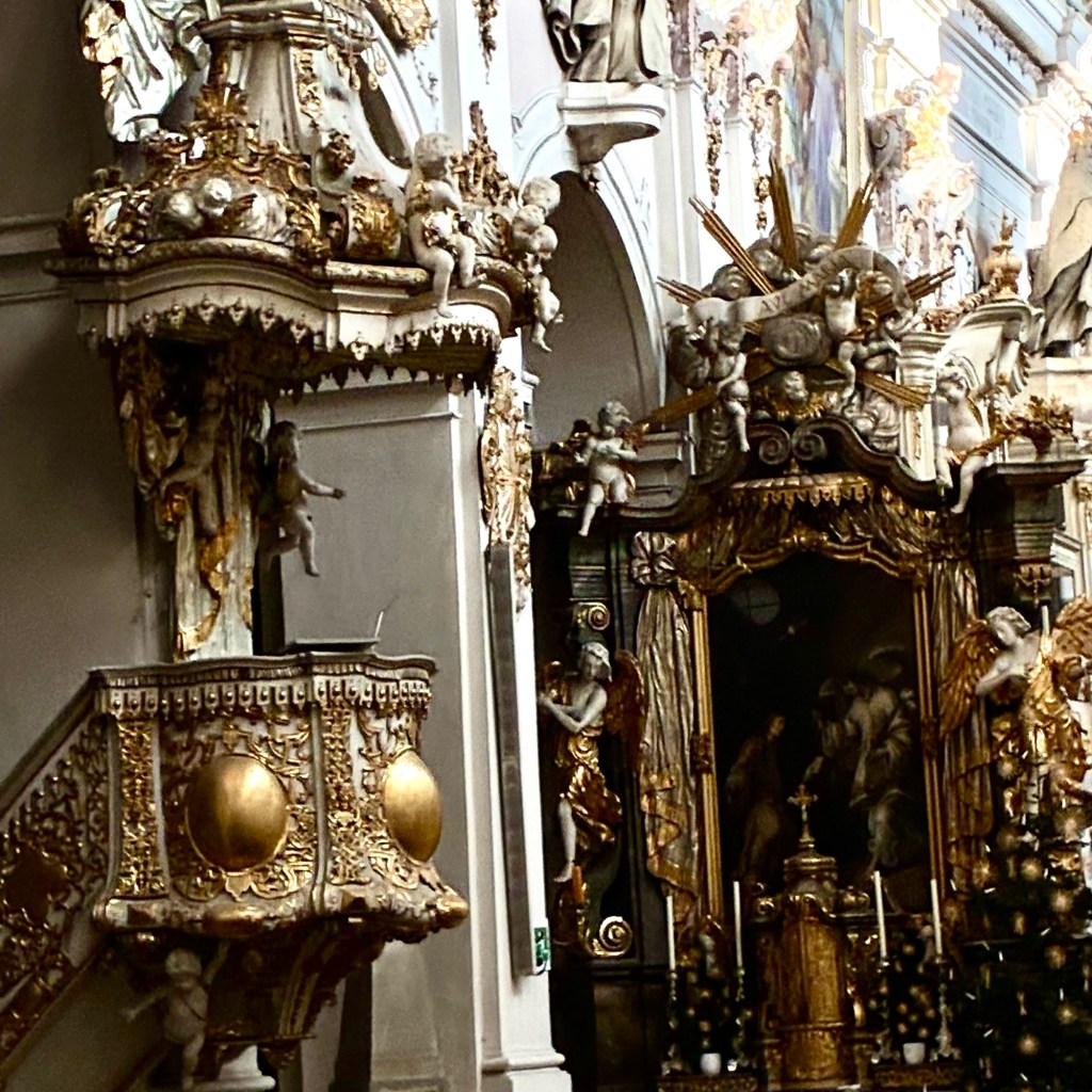 Interior pictures of St Peters Cathedral in Regensburg. Sorry about the poor quality of pictures.Suggest Google for better pictures.Town of Regensburg Germany.Regensburg Christmas MarketExterior work on St Peter’s Cathedral in Regensburg.Interior pictures of the Papal Basilica of St Emmerin.Regensburg View of the cathedral from our hotel.Dinner at our hotel restaurant.Pumpkin Cream Soup. Sweet and sour pumpkin with pumpkin seed oil and pumpkin seeds – Yumm! Ron ate two bowls!Baked Salmon Trout Fillet. Sauerkraut crust, potatoe and apple salad, horseradish dip.Exterior entrance to our hotel.Our hotel room- Hotel Regensburg Herzogshof am Dom.Exterior picture of our hotel.Late night dinner – ciao Pizzeria and Restaurant.Local version of bruschetta ( no balsamic glaze).Rigatoni Rustica.Exterior view of our hotel in Regensberg.