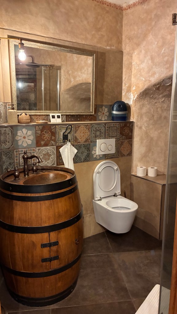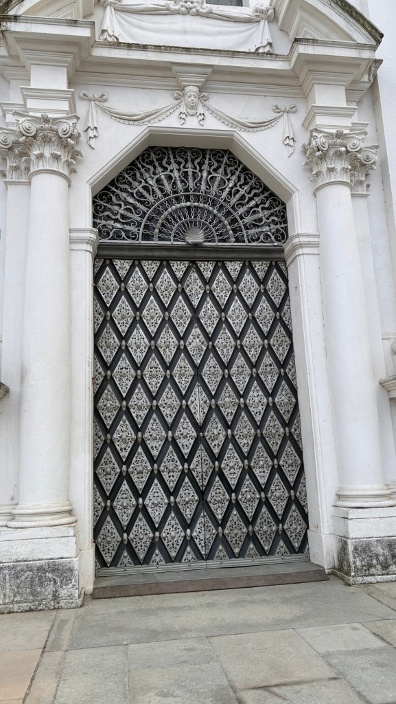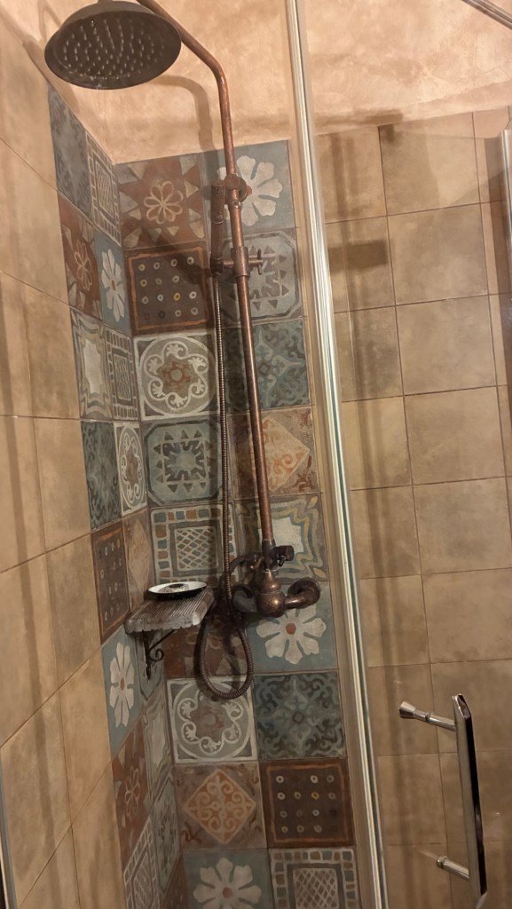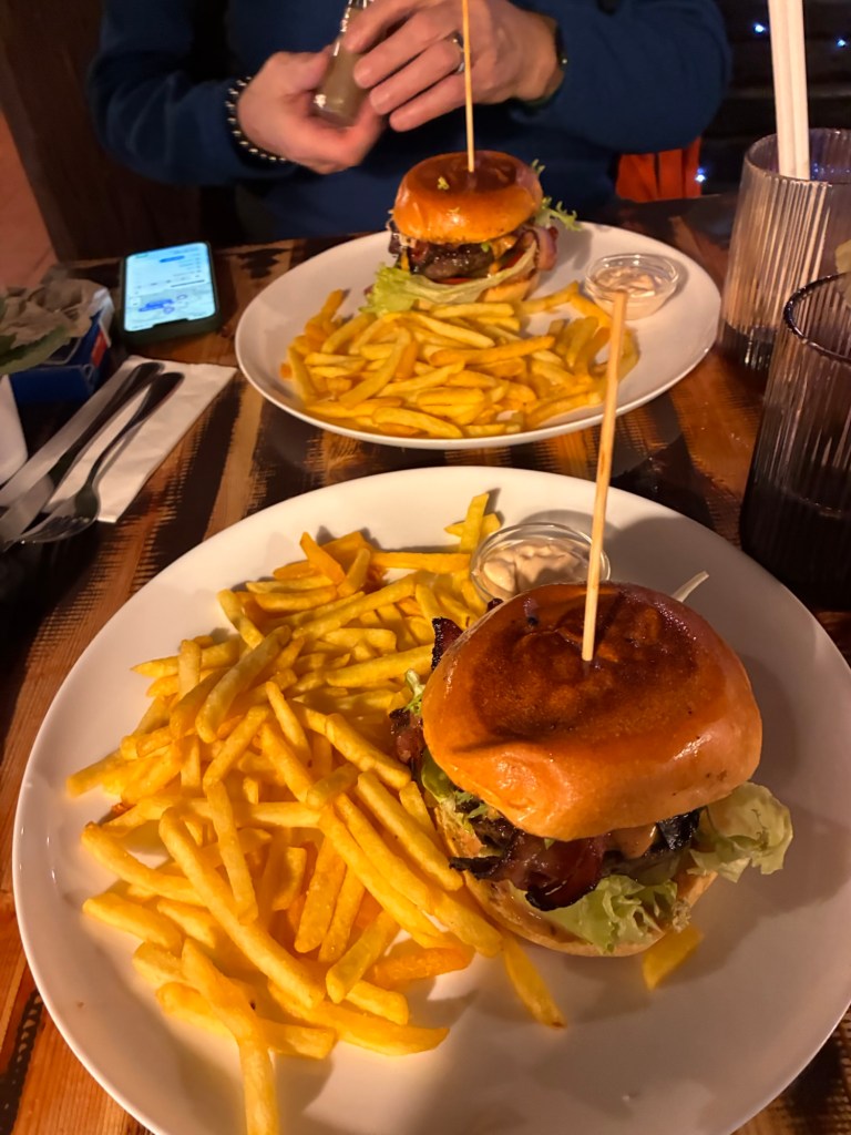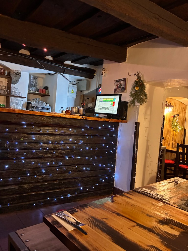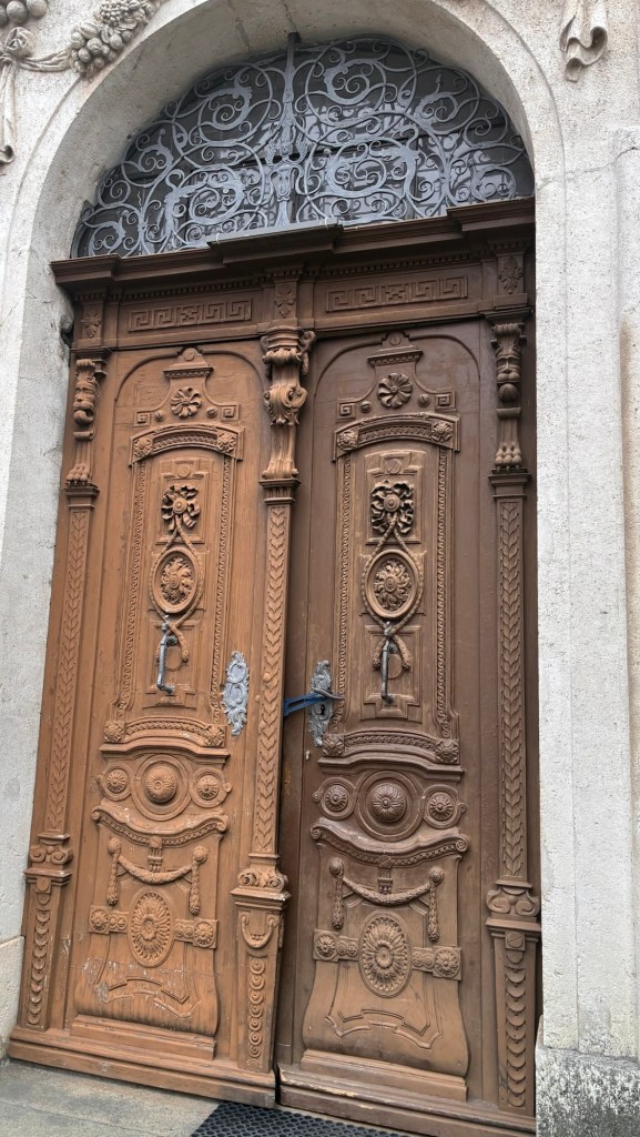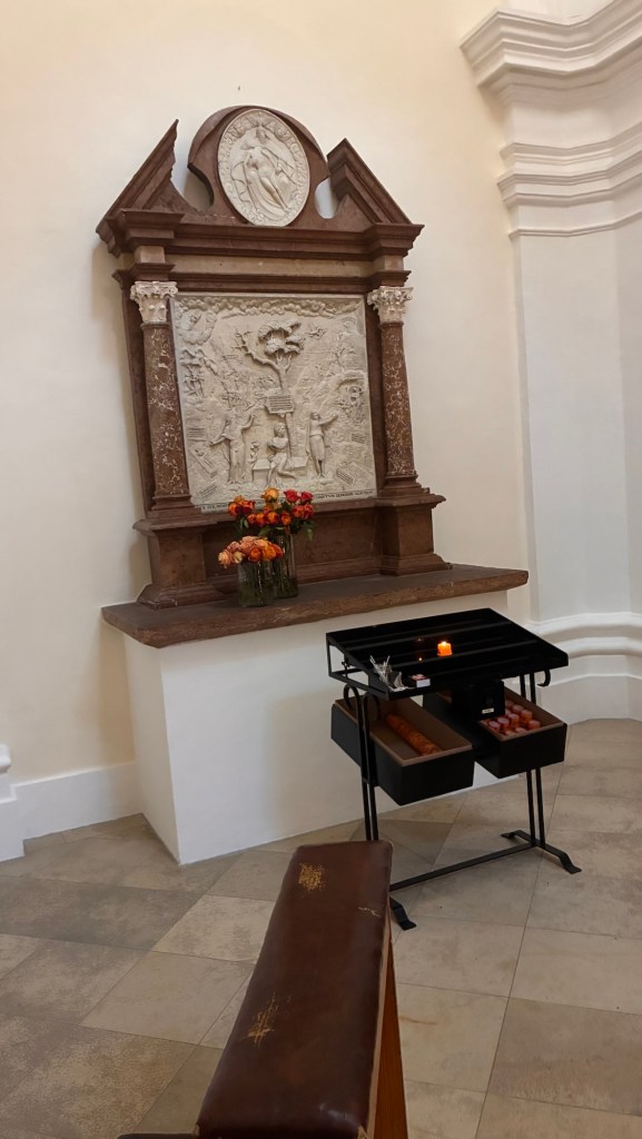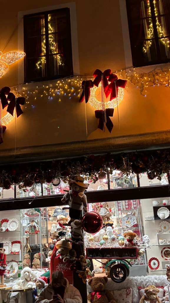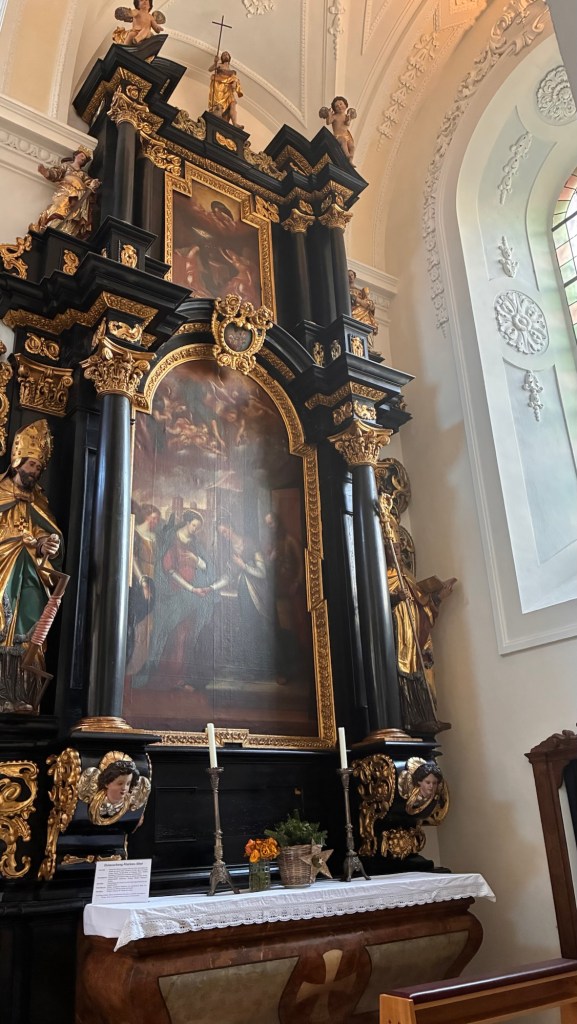 Way to start a breakfast. A selection of juices plus Mimosas!Our hotel located directly across the street of St Stephan’s Cathedral.No hotel parking – it’s three blocks away and all cobblestones.Regensberg church.St Paul’s church – Regensberg.Streets and alleys of Passau, Germany.Left section of the exterior of St Stephan’s CathedralA Baroque masterpiece with a large number of frescoes.Passat Christmas Market.A MalibuPunch and a chimney cake – inside is lined with Nutella and then rolled in walnuts! YUMMY!Some pictures of the interior of St Stephan Cathedral.Massive updating throughout the church.Sidewalk cafe in Passau. It’s almost zero so no one is there.Side entrance to St Paul’s church which is older than the cathedral.One of the world’s largest organs.Our gloomy drive from Passau Germany to the town of Cesky Krumlov, Czech Republic. Not on the autobahn so it took us hours to get here.Our residence for the night, Krumlov Tower. We’re on the ground level, only three rooms in this tower.Cesky Krumlov Christmas Markets.Hamburger and fries for dinner.Brown pigeon in Passau Germany