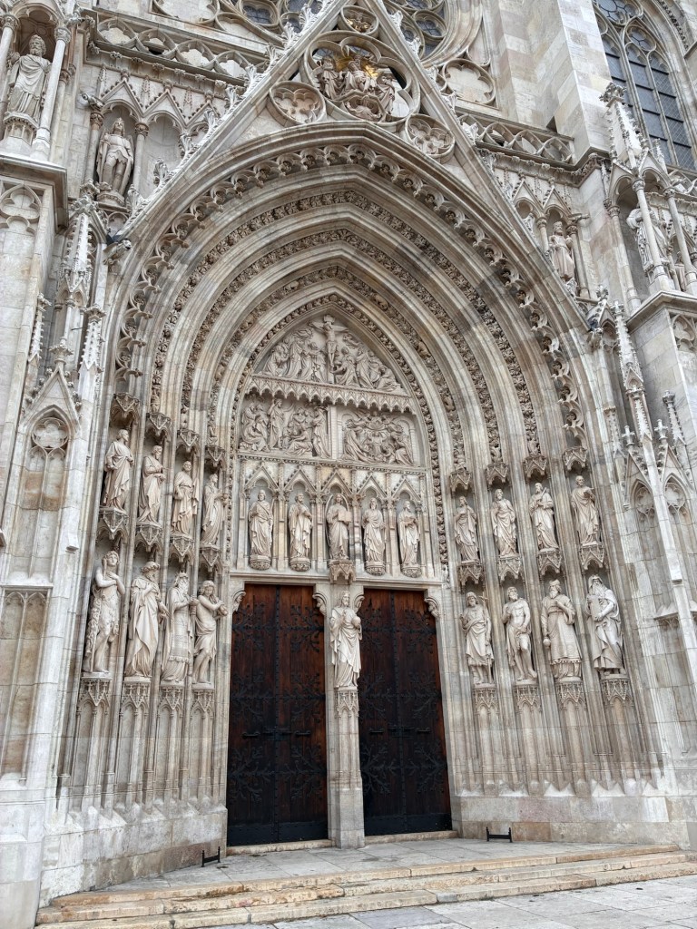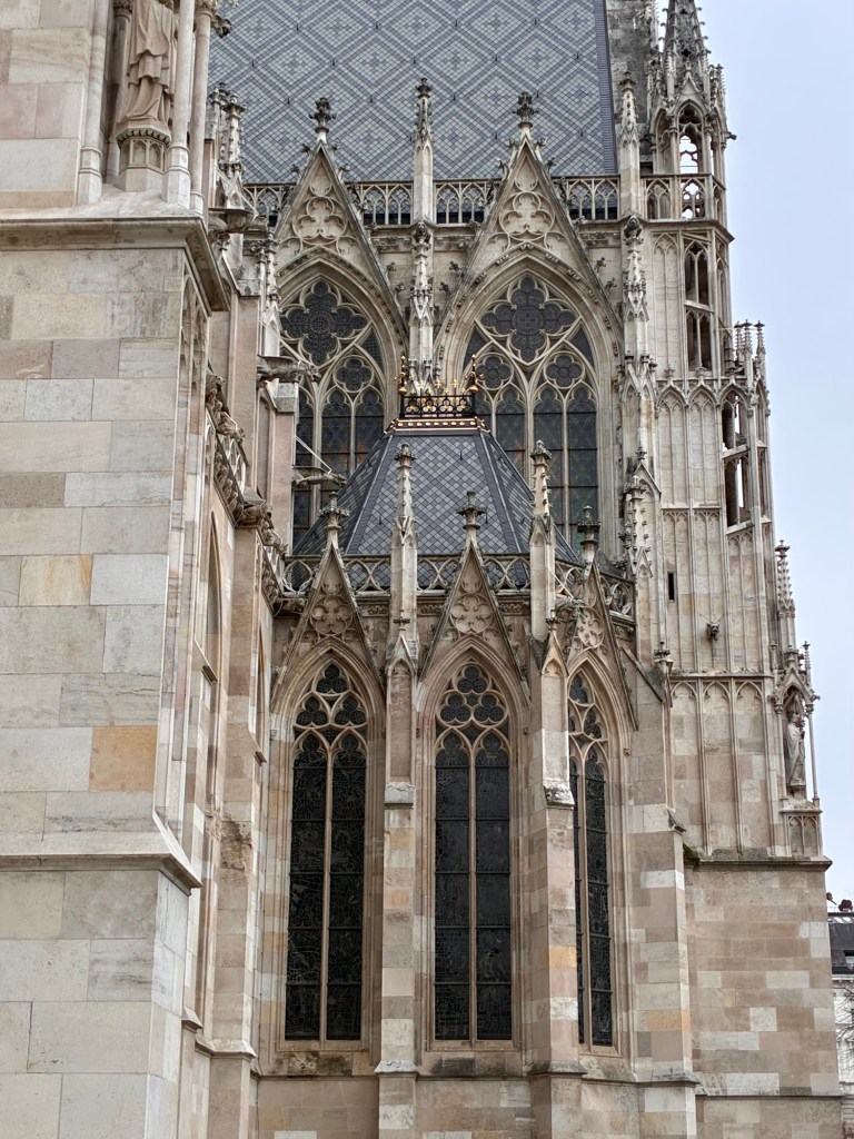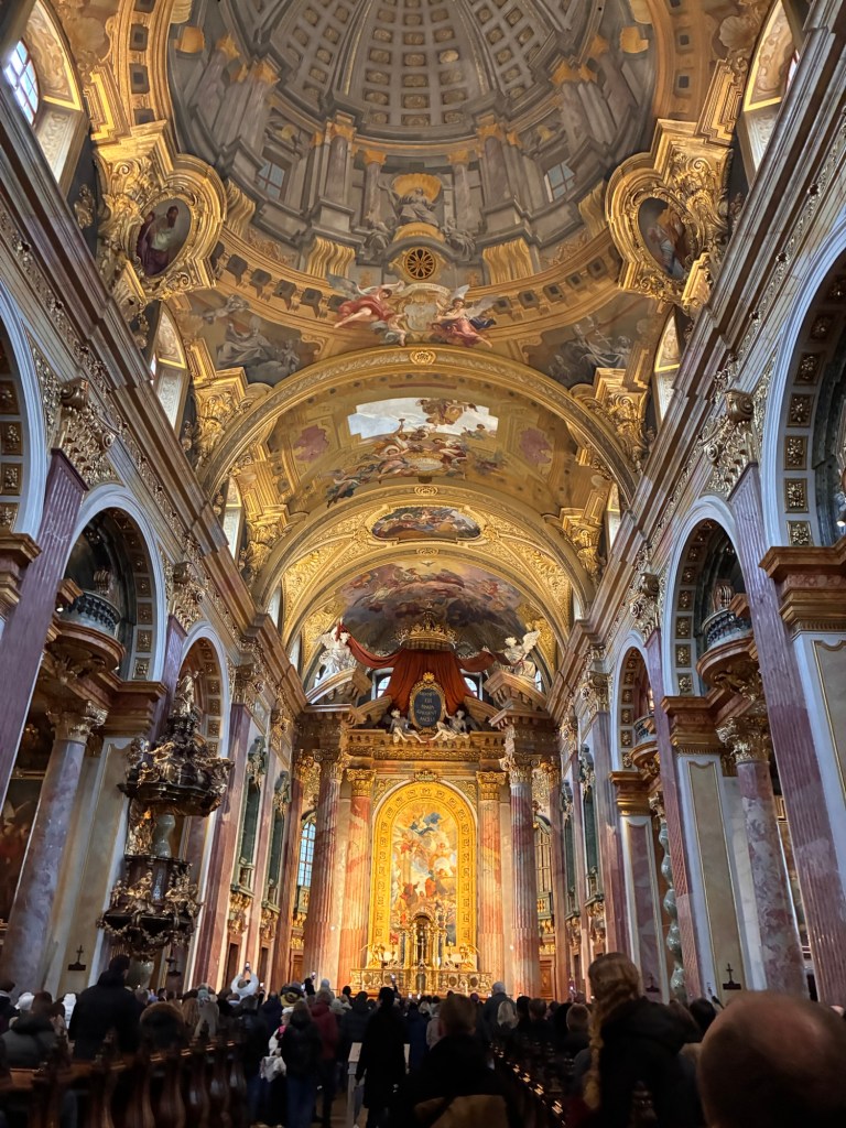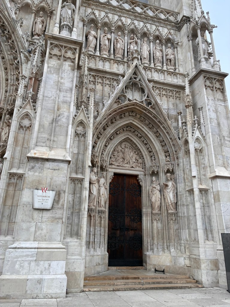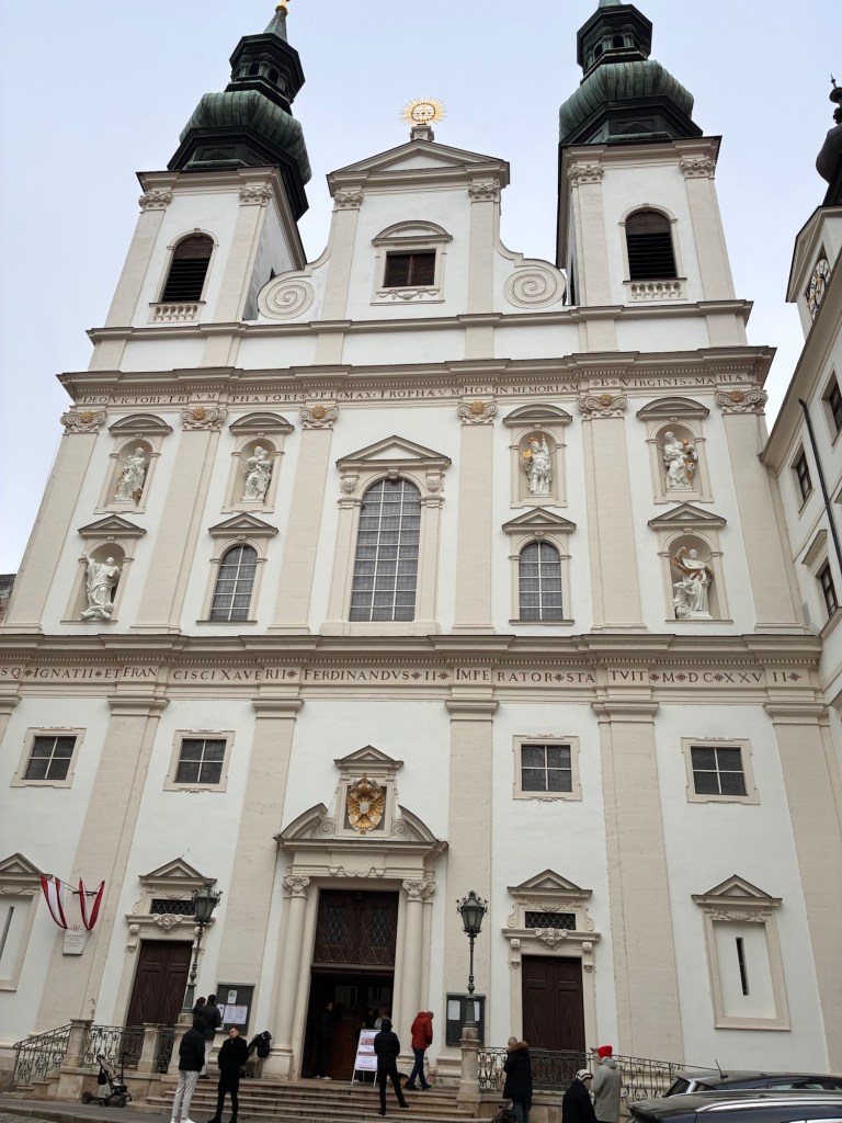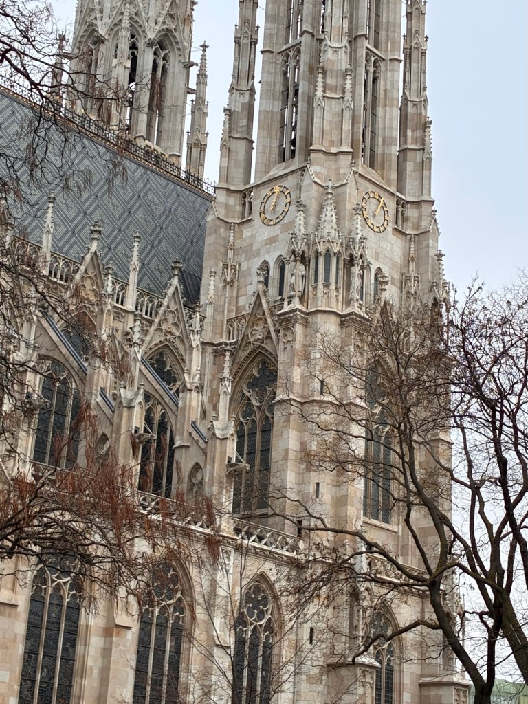 Otto Wagner Church – a masterpiece of Viennese Art Nouveau.The story around the church’s sprawling complex.Some of the seps leading to church.Christmas morning mass at St Andrew’s parish church.Vienna architecture.Breakfast at “The Savoy”Middle of the block passage that shortens the time to get shops along the way.The Votive Church, a Neo-Gothic masterpiece with twin lace like towers. The Jesuit Church, dedicated to Saints Ignatius of Loyola and Francis Xavier – founders of the Jesuit order.