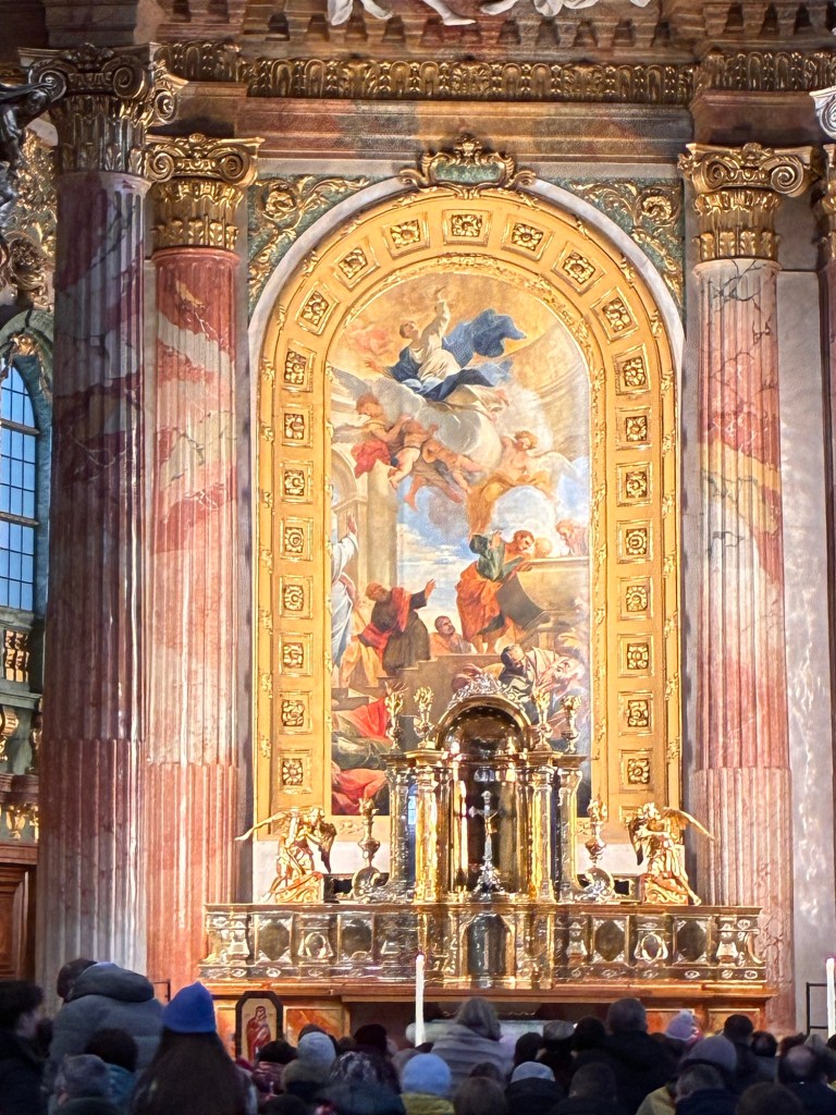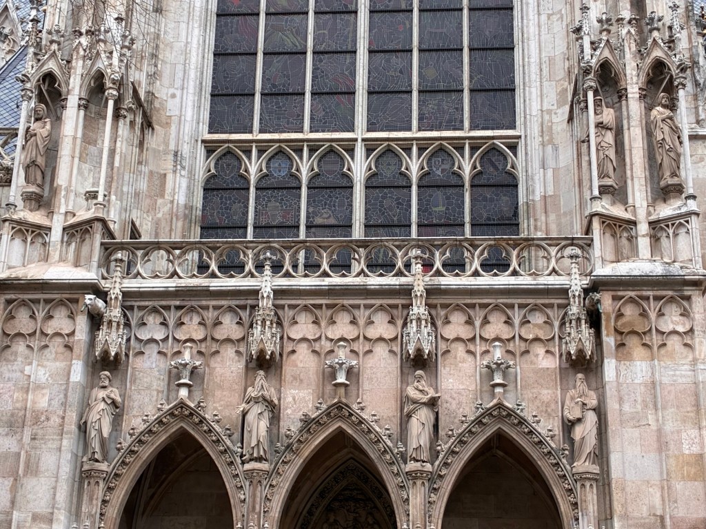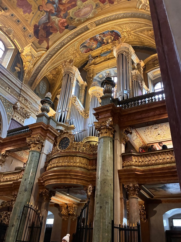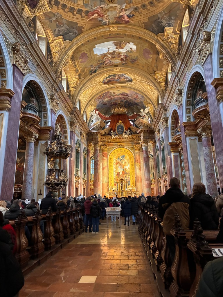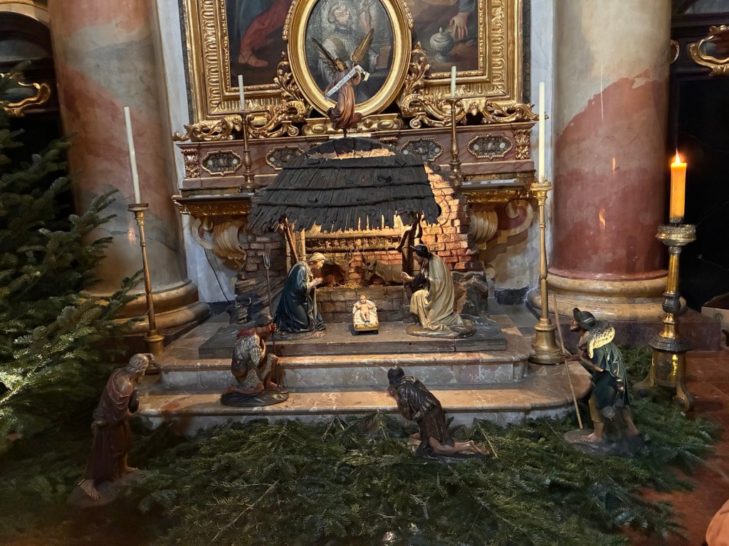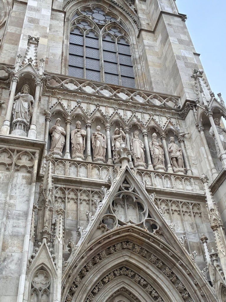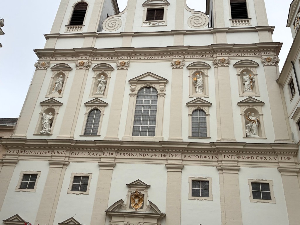Otto Wagner Church – a masterpiece of Viennese Art Nouveau.The story around the church’s sprawling complex.Some of the seps leading to church.Christmas morning mass at St Andrew’s parish church.Vienna architecture.Breakfast at “The Savoy”Middle of the block passage that shortens the time to get shops along the way.The Votive Church, a Neo-Gothic masterpiece with twin lace like towers. The Jesuit Church, dedicated to Saints Ignatius of Loyola and Francis Xavier – founders of the Jesuit order.